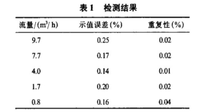 該電磁流量計已經得到應用,并依據JJG198-94《速度式流量計檢定規程》,利用質量法水標準裝置,對采用基波平均值信號預處理電路的電磁流量計
