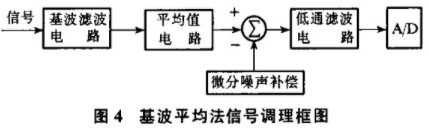 電容隔離法或補償電路不能很好解決感應信號失真和干擾信號被放大等問題.經過大量實驗和對國外電磁流量計的研究,本文提出一種基波平均值轉換的信號處理方法,基于e(t)與峰值、平均值、有效值成正比關系,對信號進行濾波并采用基波平均值處理轉換的方法,可以有效提高電.磁流量計抗干擾的能力.結構框圖如圖4.