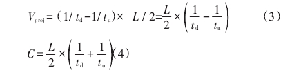 如圖1所示,一對換能器A和B以聲道長度L、聲道角φ安裝在流道2側(cè),流體中超聲傳播速度C會與聲道投影流速Vproj→Vcosφ疊加,造成超聲從下游到上游換能器的傳播時間tu小于從上游到下游換能器的傳播時間td那么,其計算如式1~4所示。