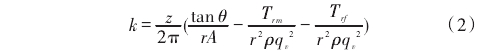 式中:z表示葉片數(shù);θ表示葉片傾角;r表示葉輪半徑;A表示過流面積;ρ表示液體密度;qv表示瞬時體積流量;Tm表示摩擦力矩;Trf表示流動阻力矩。